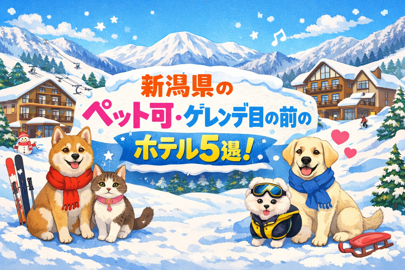 この記事では、冬のスキーシーズンに愛犬やペットと一緒に快適に過ごせる、新潟県の「ゲレンデ直結&ペット可」ホテルを5つ厳選してご紹介します。